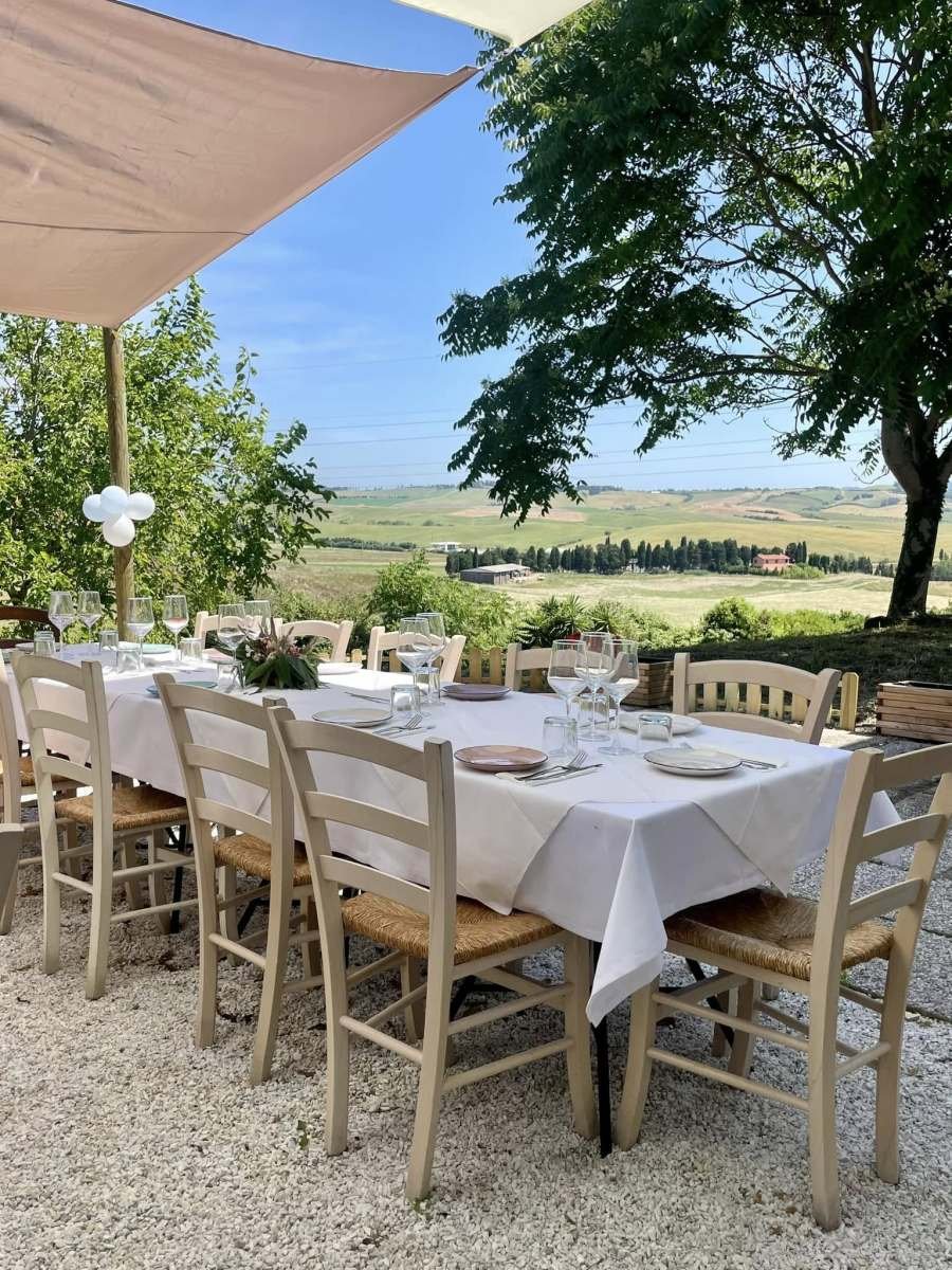 L’agriturismo Pane e Vino si presta a pianificare il vostro pranzo, apericena o cena immersi nel verde in una location unica con viste mozzafiato sulla campagna circostante.